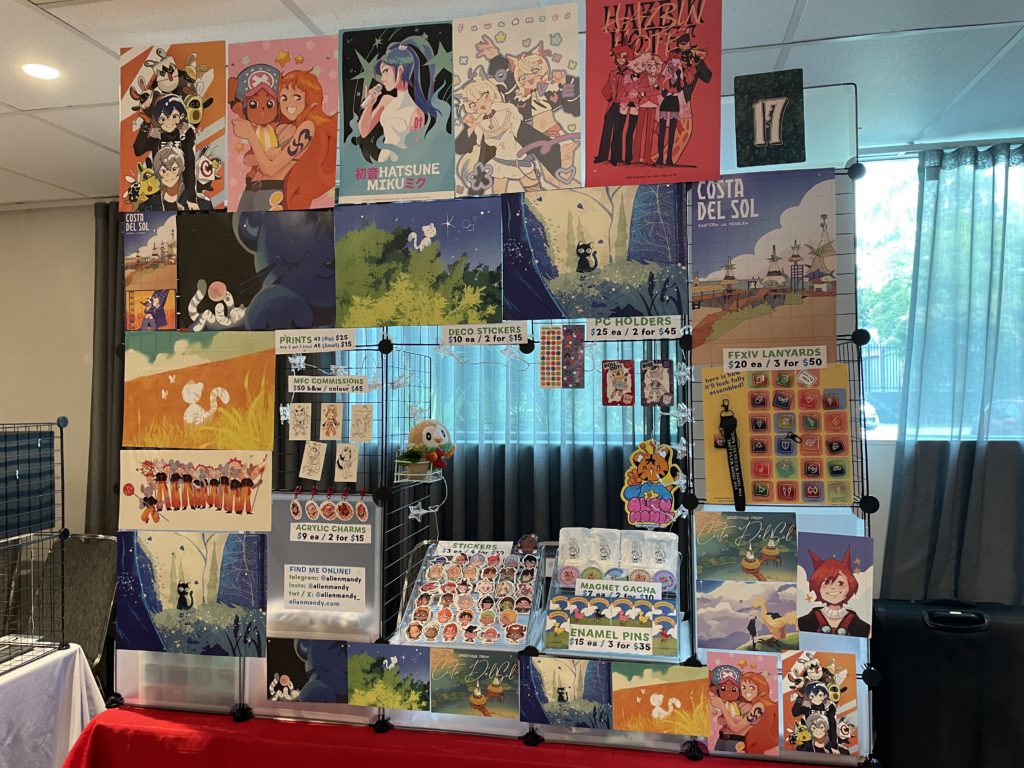 You’ll find a fun mix of more professional and unserious/derpy art at my booth. And hey, if you were wanting your commission fix, you can throw your sonas at me for custom art!!