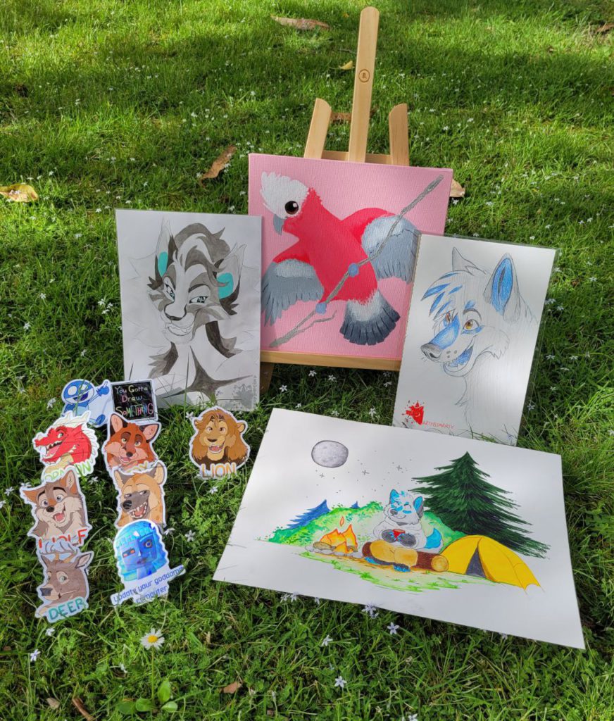A fun and colourful artist with a mix of furry art as well as native animals and landscapes. Stickers, prints, paintings and more.