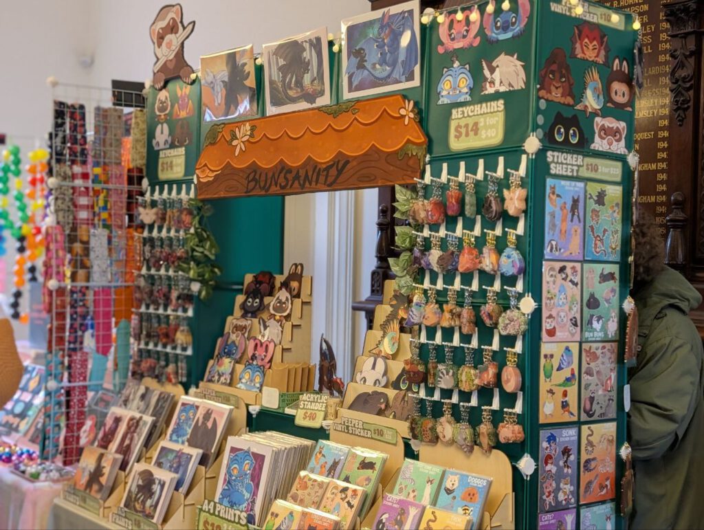 I am an an artist from Melbourne whose works largely centre around animal and anthropomorphic animals! You’ll find a mix of stickers, keychains, prints, and custom commissions at my table!