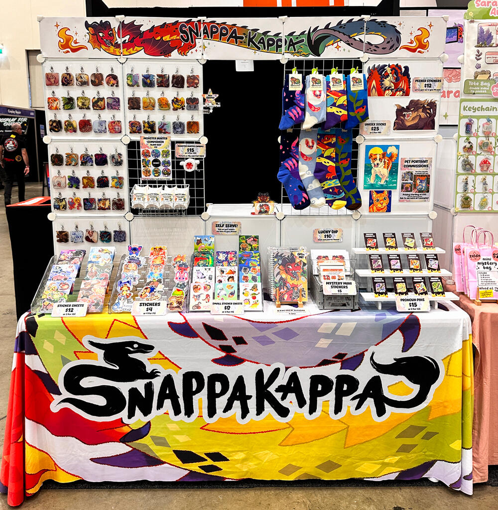 I’ve been a sole artist who sells merchandise at markets and conventions for two years in Melbourne and I had made my first interstate debut this July in Adelaide. I create a mix of both fan art and original content. Some fandoms that I create for are but not limited to: Jurassic Park, Pokemon and Sonic the Hedgehog. I as well tend to produce a notable amount of Aussie esque content to connect and relate to my local community.