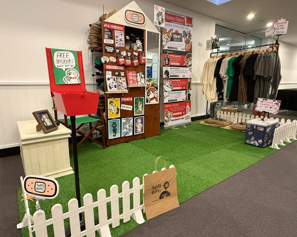 We are a team of 3 furry creatives offering cut & sewn custom apparel with sustainable, high quality unique fabrics and interesting fits. Our brand centers around a cast of cartoony anthro animal characters in “ruff” situations.