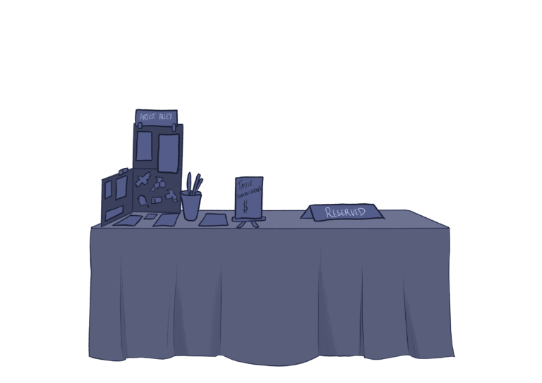 The artist alley has no cost, but vendors must have a valid convention pass to reserve a table.