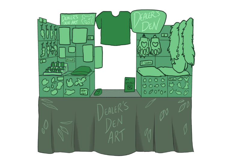 - No large fursuit pieces (such as heads). Please apply to the Art Show if you wish to sell a pre-made.