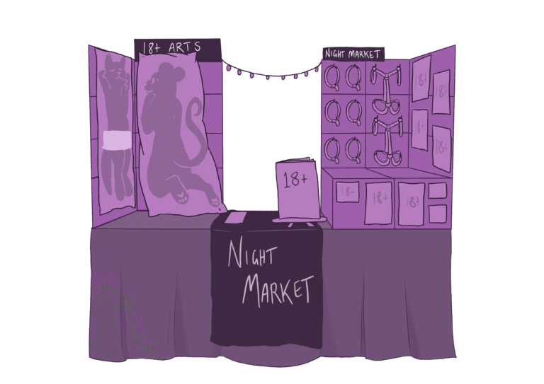- Any potentially kink or fetish attire must be kept within the Garden Room space during the Night Market time. If you leave this space, you are to cover up adequately as if you are walking through a public park.
